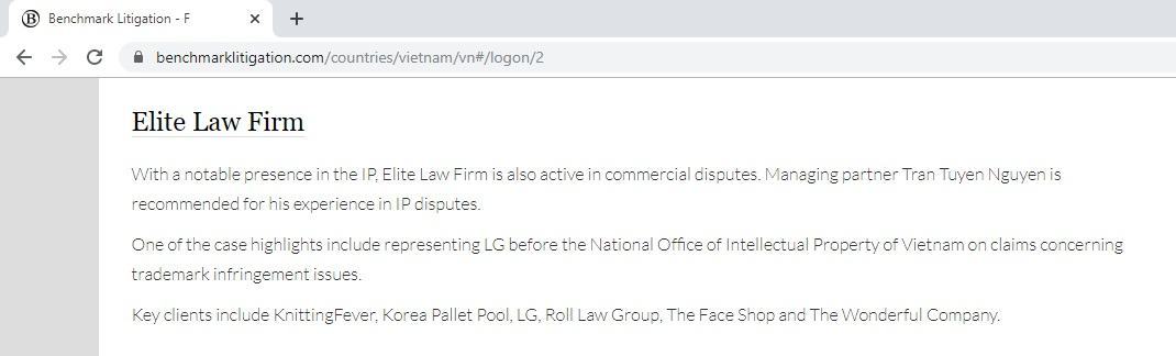 2. Mr. Nguyen Tran Tuyen – Managing partner/Attorney of ELITE law firm is ranked in the field of Intellectual Property based on good achievements in the practice process.